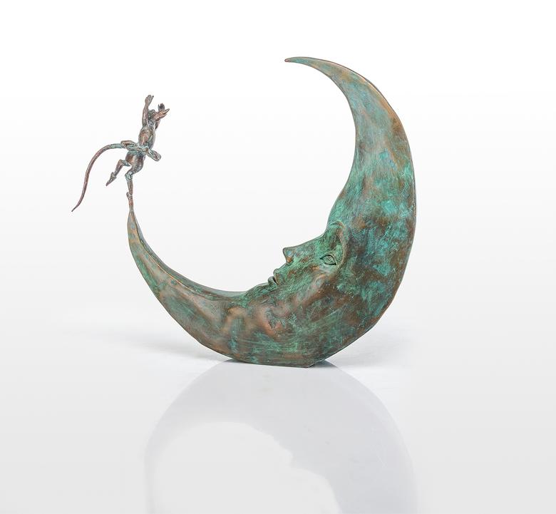 „Ich träume“, sagt die Künstlerin zu ihrem hier in feinster Bronze umgesetzten Werk, „von einer Welt, in der die Mäuse in der Dämmerung mit dem Mond tanzen.“