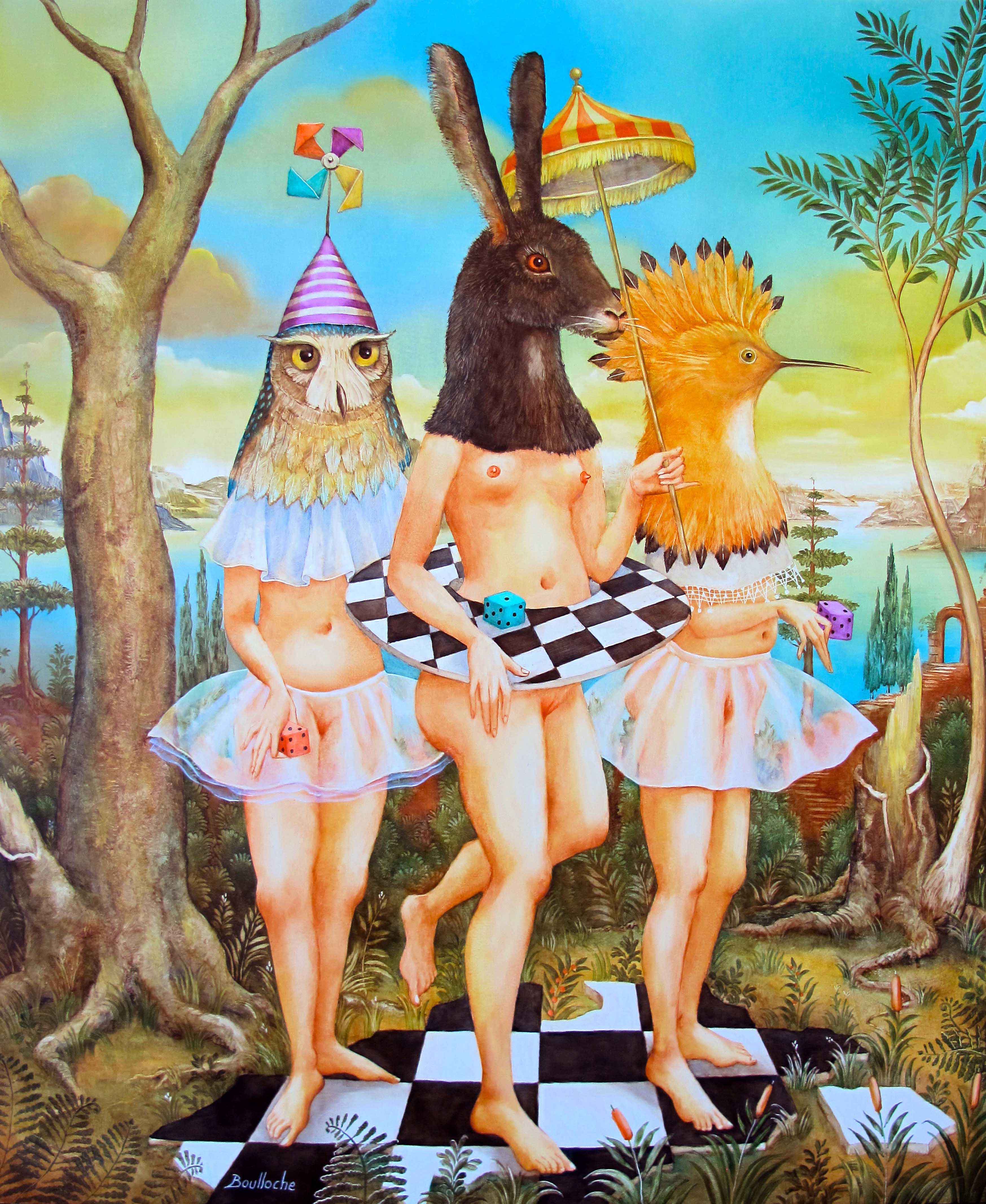 So lange sie sich erinnern kann, war Agnès Boulloche immer eine große Bewunderin von fabelhaften Kreaturen wie Chimären, Gorgonen und Geistern. Wenn sie malt, lebt sie in einem fantastischen Reich, das von vermenschlichten Tierwesen bewohnt wird, einer wundersamen Welt, angelehnt an die Renaissance und das späte Mittelalter. Sie träumt mit offenen Augen, und ihre Kunst vermag man erst zu glauben, wenn man sie selbst gesehen hat.
