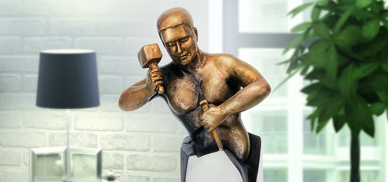 So einfach ist es natürlich nicht. Steinbildhauerei ist eine hochkomplexe Angelegenheit und erfordert großes künstlerisches und handwerkliches Können. Michelangelo selbst ist der beste Beweis. Und für den Bronzeguss ist es ganz und gar falsch, denn hier entsteht das von Künstlerhand entworfene Werk erst durch die Kombination unterschiedlichster metallurgischer, technischer und handwerklicher Prozesse, die genau ineinander greifen müssen. Dabei spielt es keine große Rolle, ob ein aus dem Stein gehauenes oder holzgeschnitztes Objekt von fachlich versierten Modelleuren abgeformt wird oder das Gussmodell aus Wachs in plastischer Arbeit des Künstlers selbst entsteht. Es gilt, Fließkanäle zu berechnen, eine geeignete Bronzelegierung auszuwählen, eine Gussform zu erstellen und schließlich für die optimale Gusstemperatur und -dauer zu sorgen, die genau auf die Größe und die Komplexität des gegebenen Objekts abgestimmt ist. Und schließlich verlangt eine Gussbronze noch eine aufwändige Nachbearbeitung von der Entgratung bis zur Ziselierung und gegebenenfalls Patinierung. Eine jede dieser Tätigkeiten setzt großes Wissen und jahrelange Erfahrung voraus.