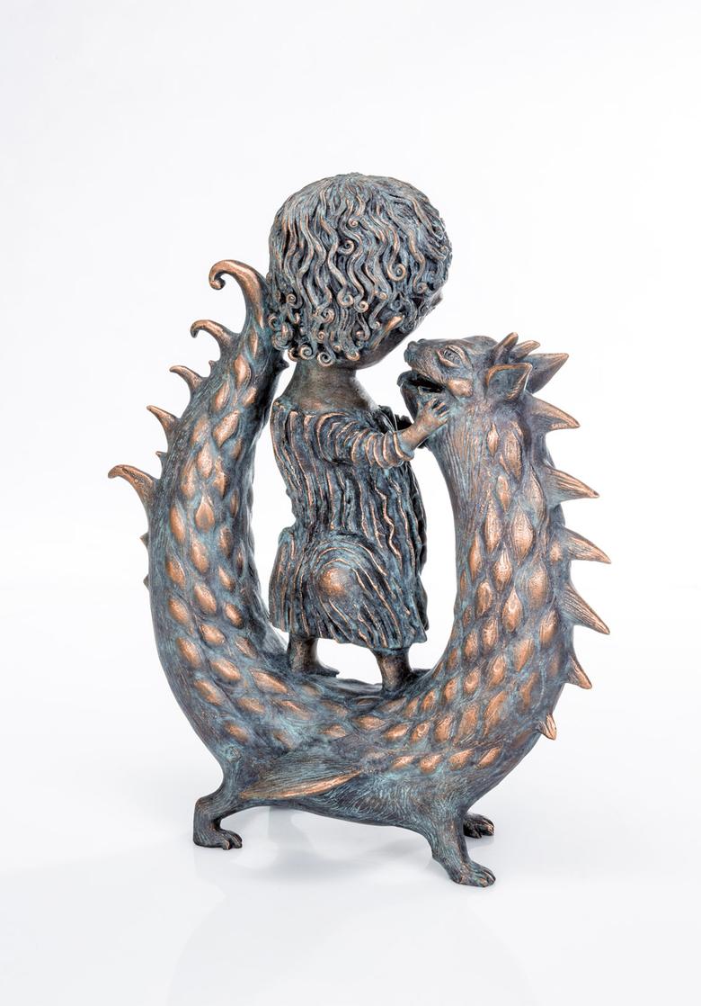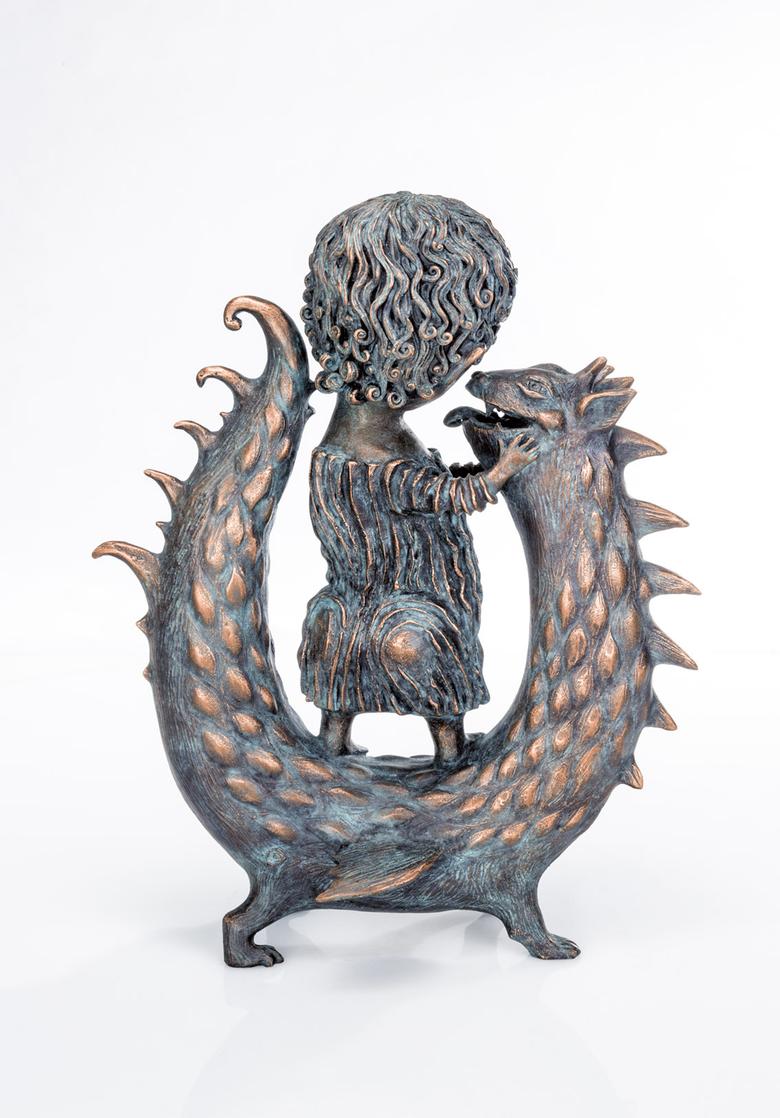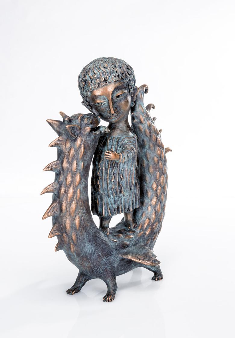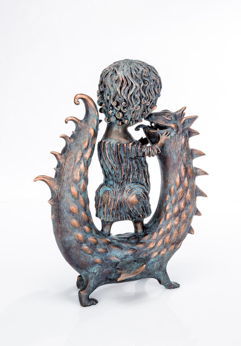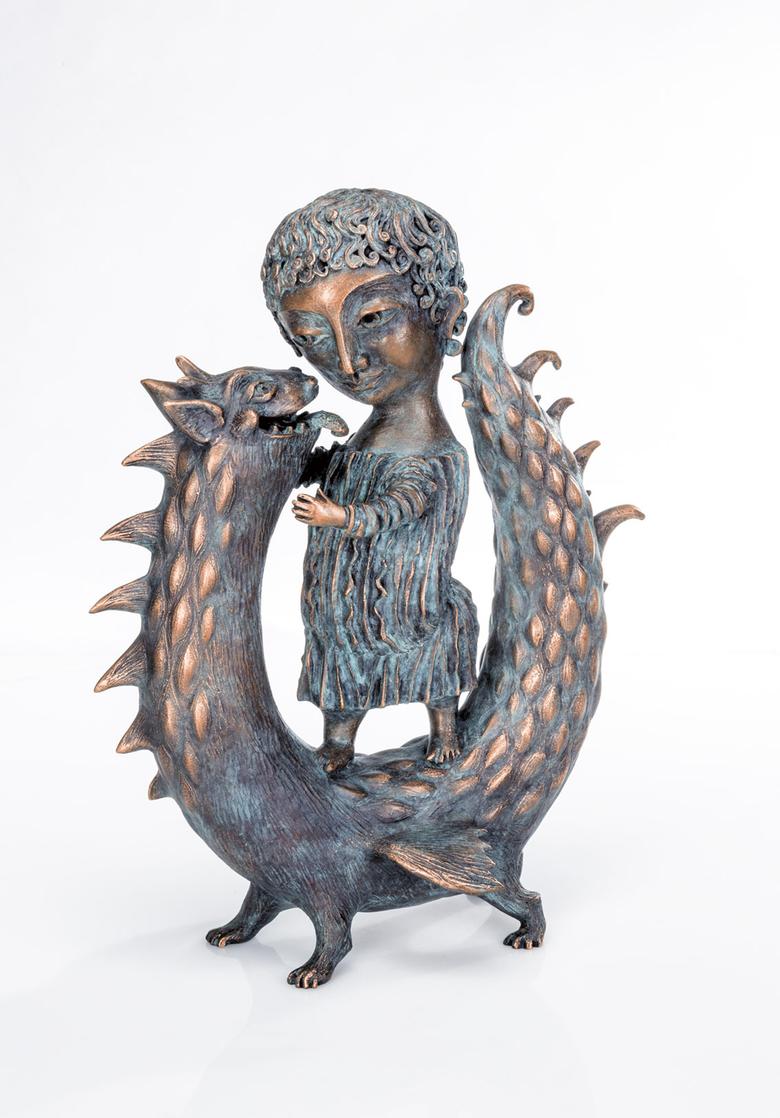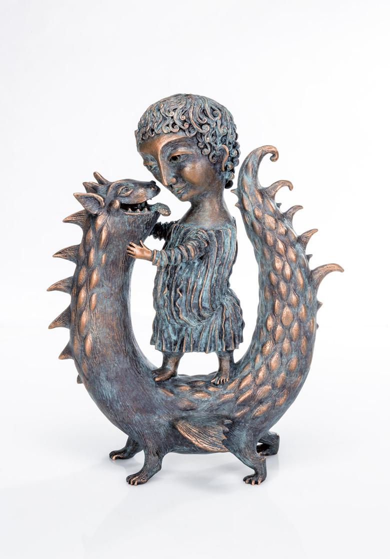 Ikonografisch wird der Heilige Georg als „Drachentöter“ dargestellt. Anders Yalonetski: Sie zeigt ihn als Kind im vertraulichen Spiel mit dem ebenfalls „kindlichen“ Untier.
