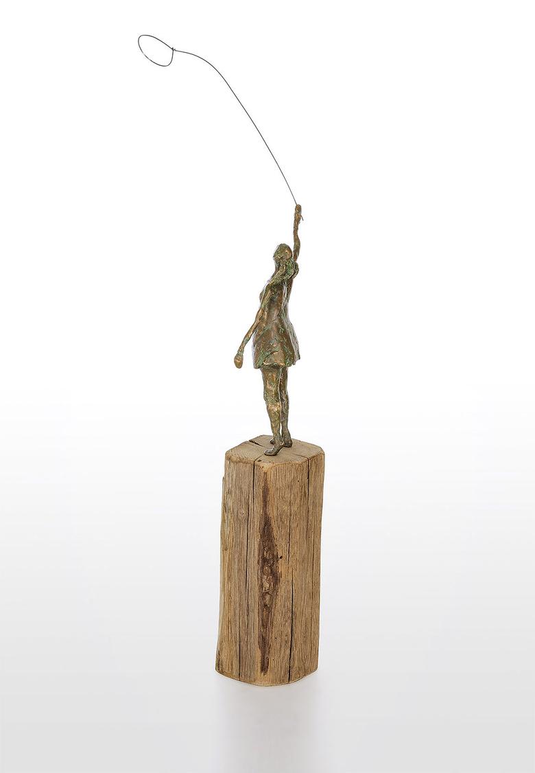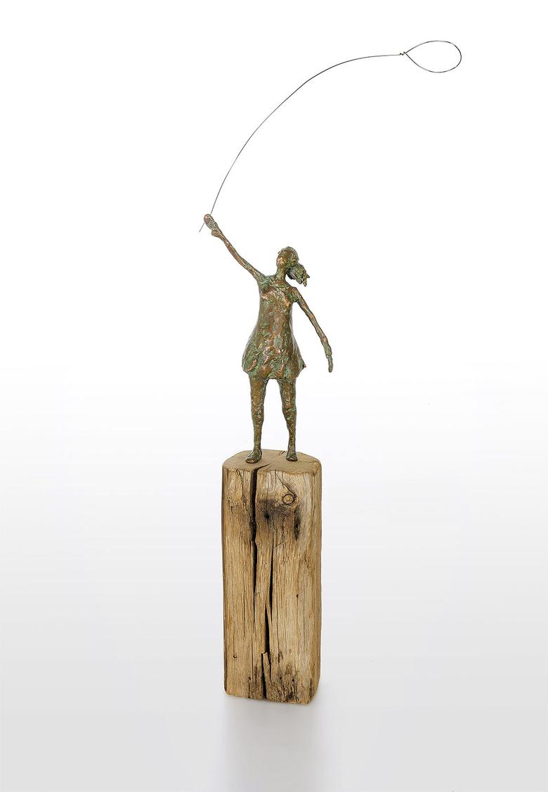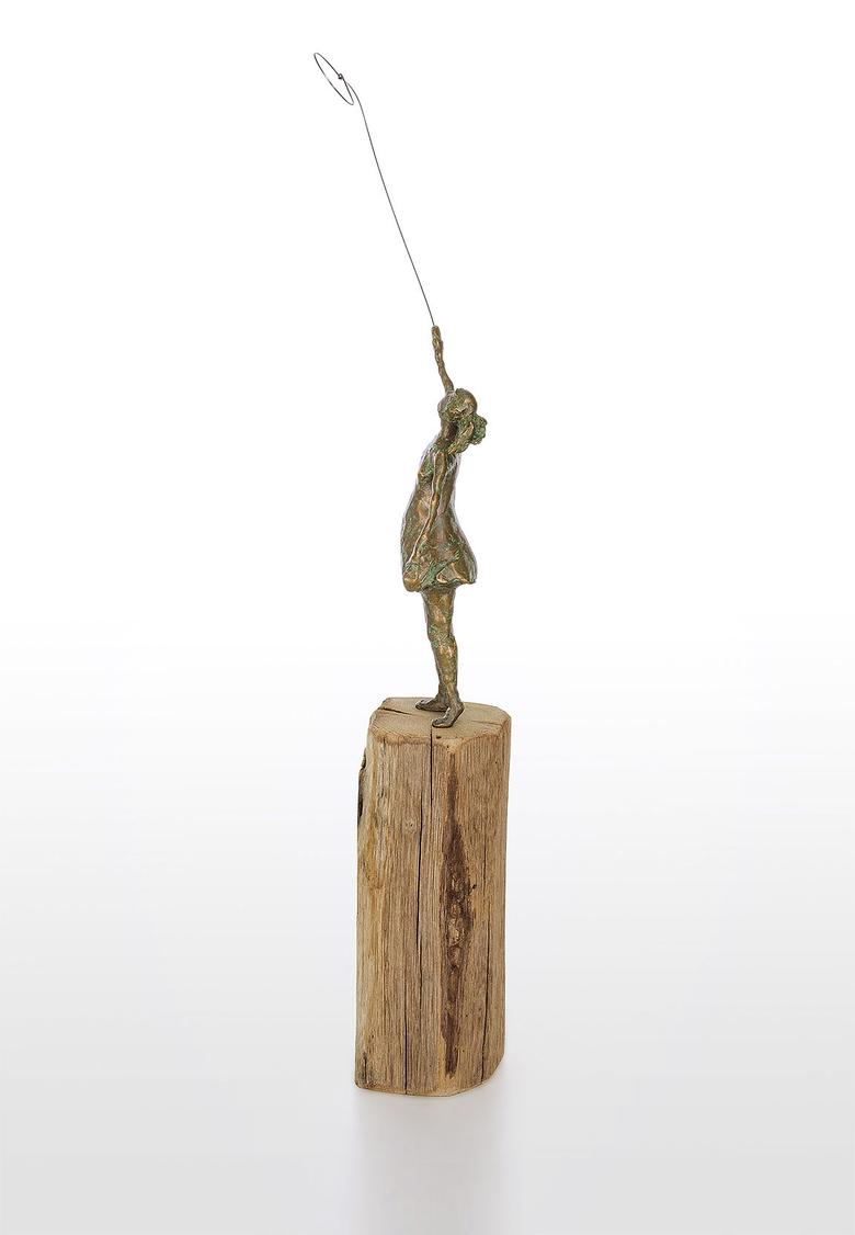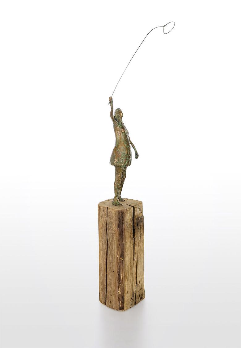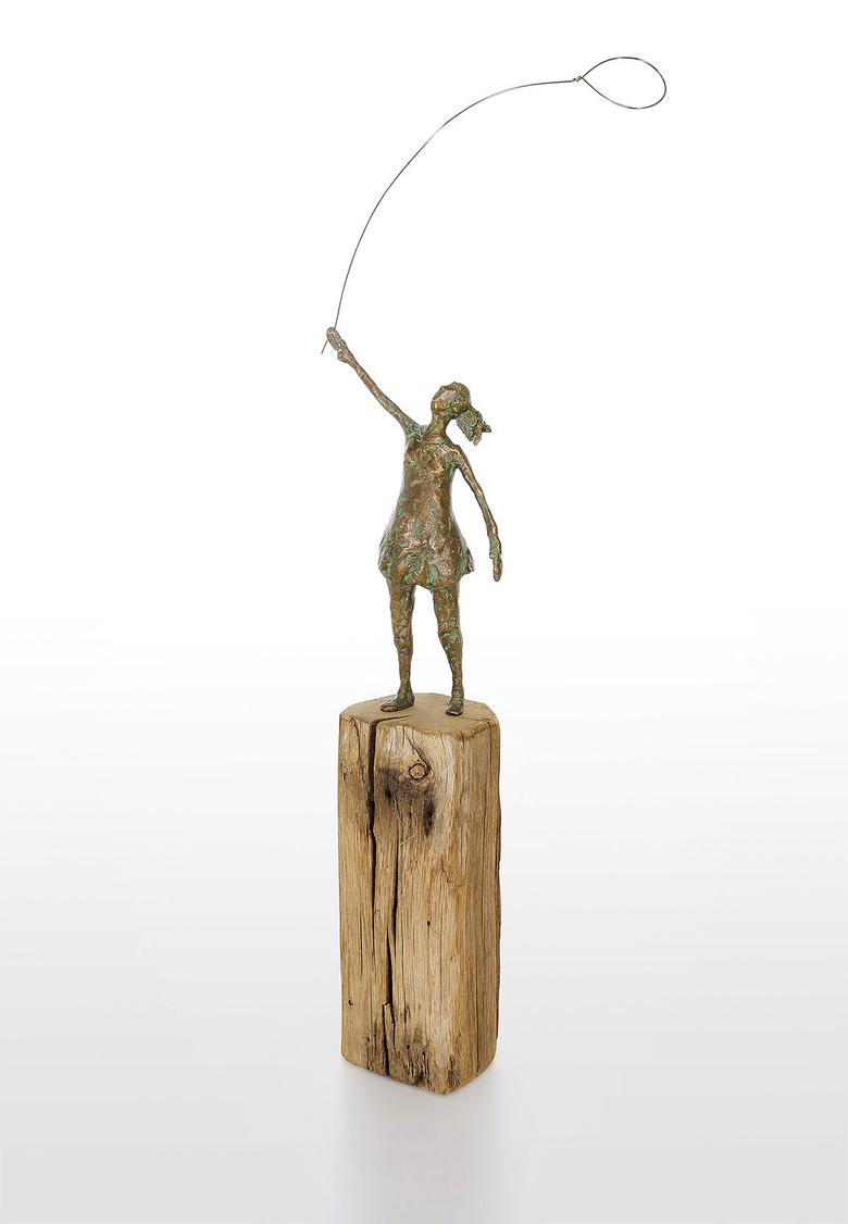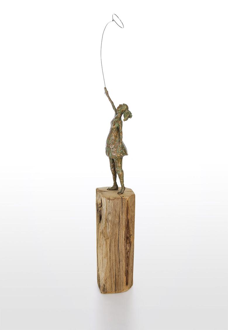 Die Hand in den Himmel gestreckt ist ihr Auge auf einen Luftballon fixiert. Ihr Haarzopf flattert im Wind, und so hat sie alle Mühe, den Ballon sicher zu halten. Eine Szene aus der Kindheit, die zum Träumen anregt.