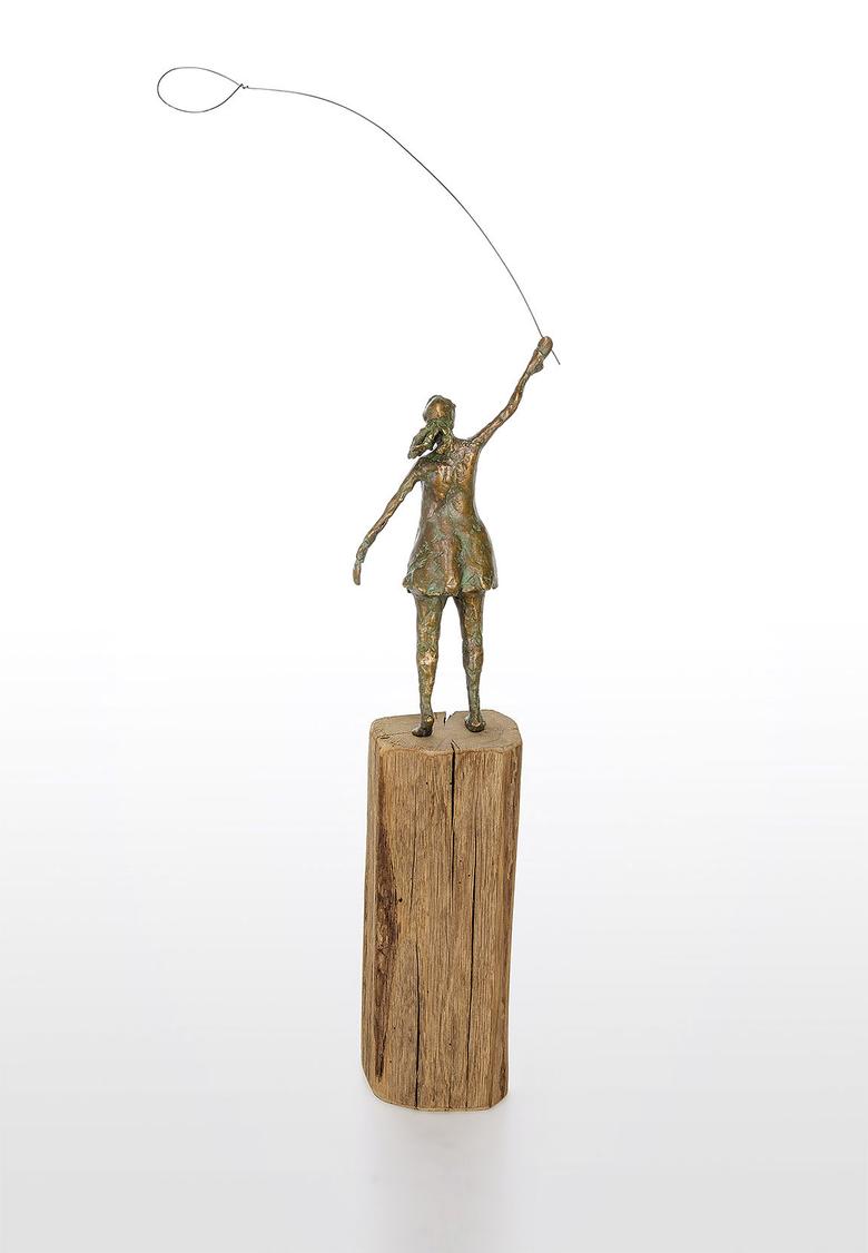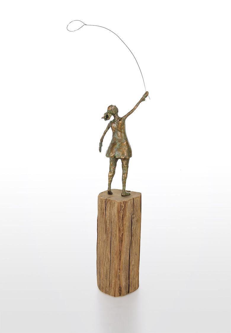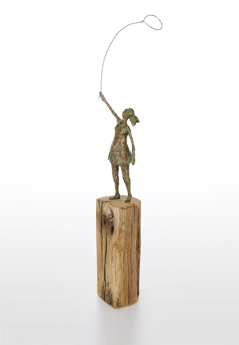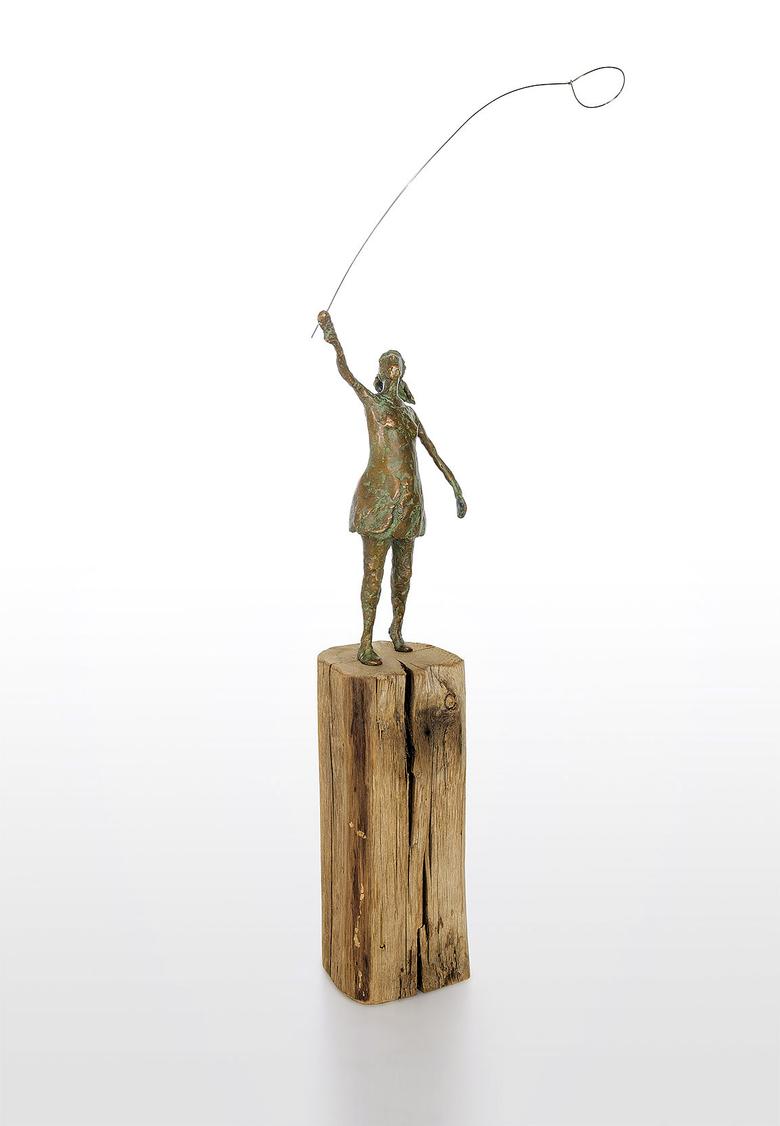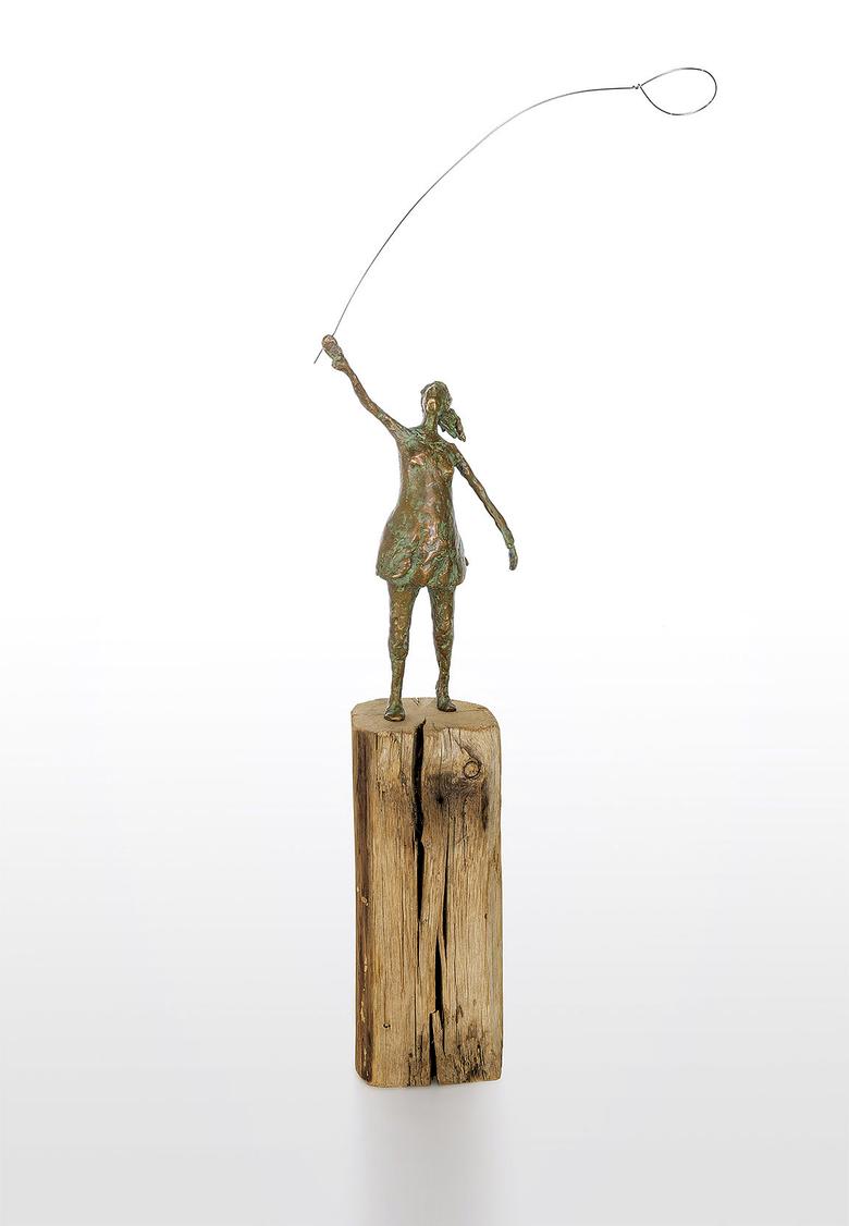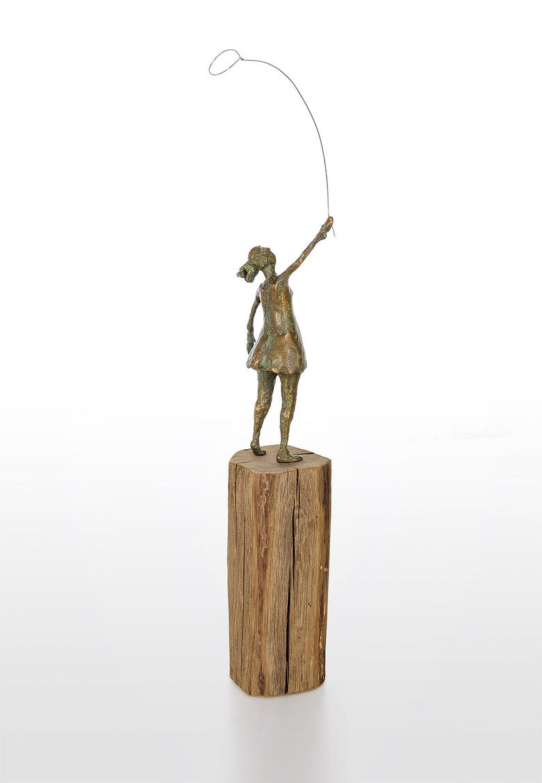 Die Hand in den Himmel gestreckt ist ihr Auge auf einen Luftballon fixiert. Ihr Haarzopf flattert im Wind, und so hat sie alle Mühe, den Ballon sicher zu halten. Eine Szene aus der Kindheit, die zum Träumen anregt.