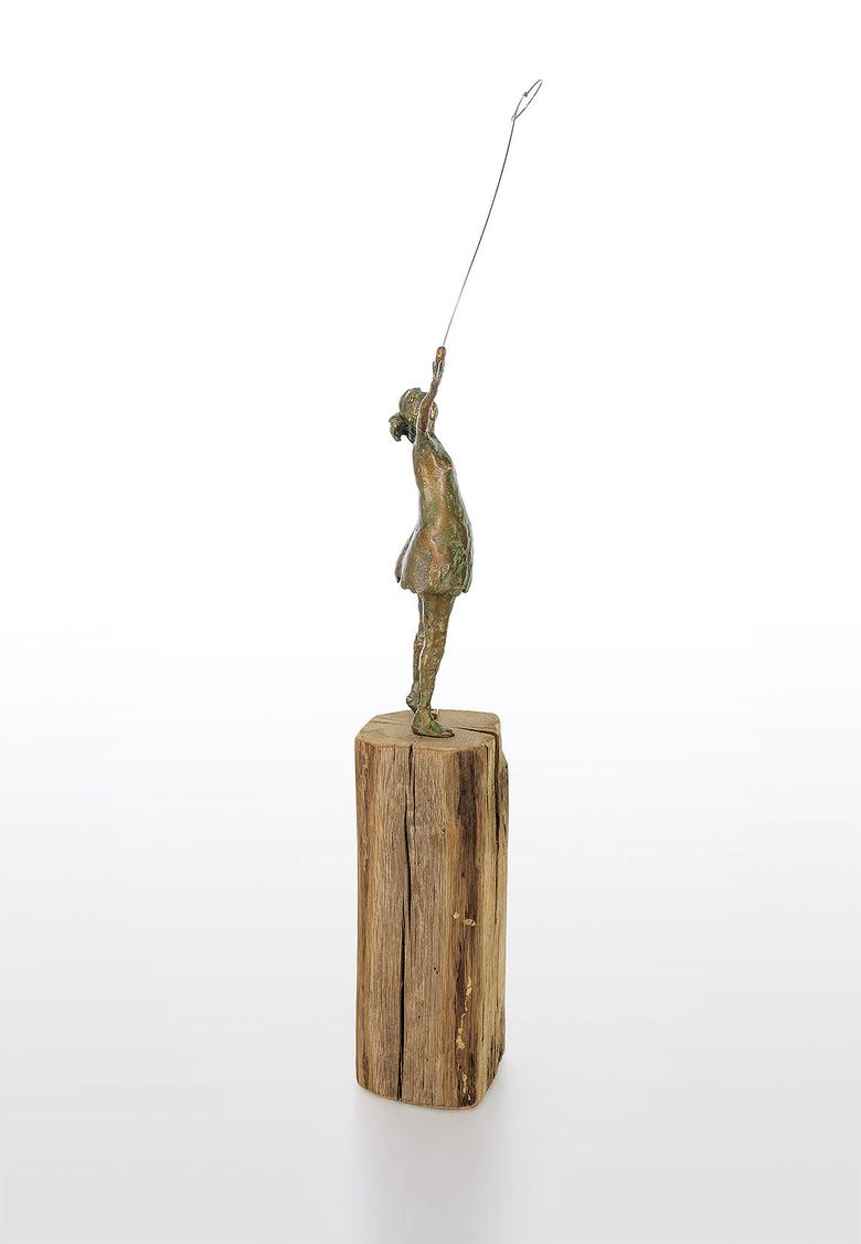 Edition in Bronze, gegossen im Wachsausschmelzverfahren, von Hand ziseliert und patiniert (inkl. Holzsockel 26x11x11 cm).