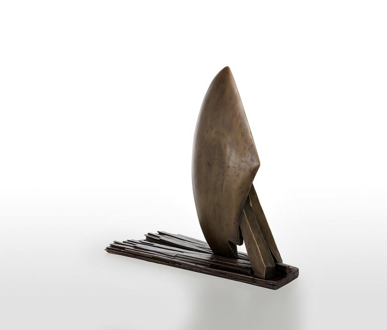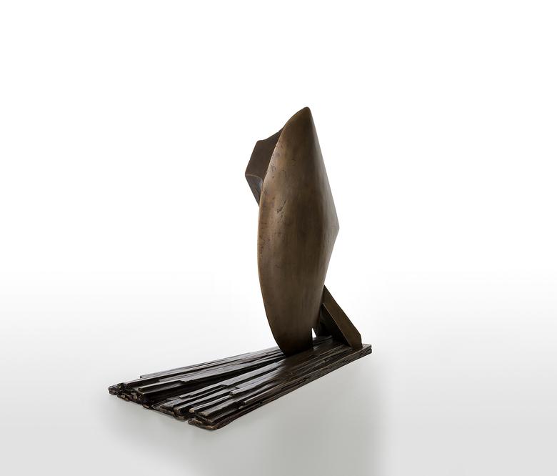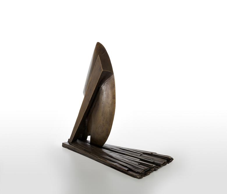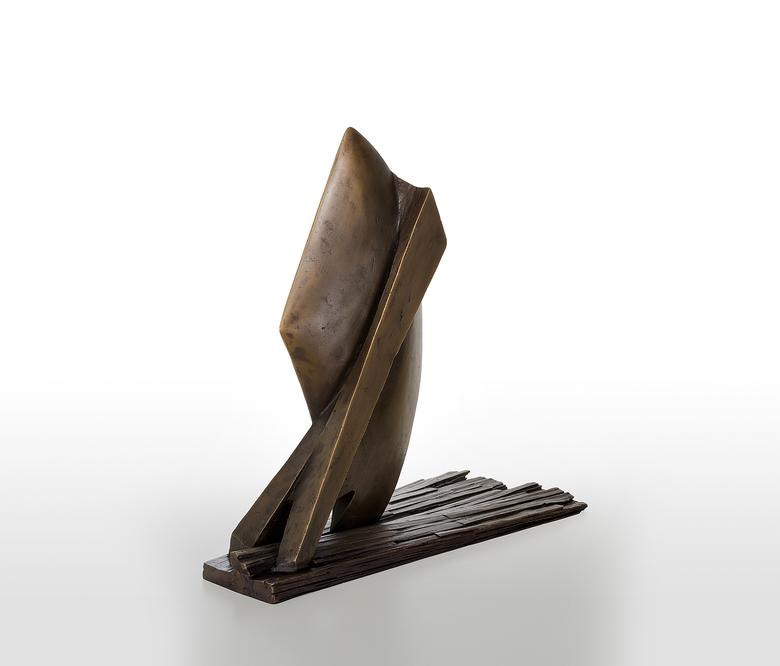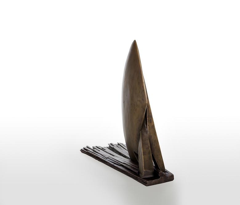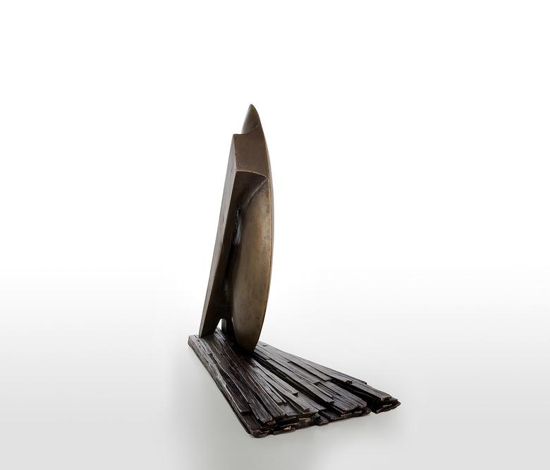 Ein Aufbruch mit Doppelsinn: Die Skulptur ähnelt einem Schiff, das den heimischen Hafen verlässt, und erinnert zugleich an einen Pflug, der die Erde zur Aussaat „aufbricht“ – gleichviel, sie steht für den Anfang, der Neues hervorbringt.