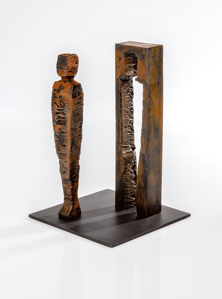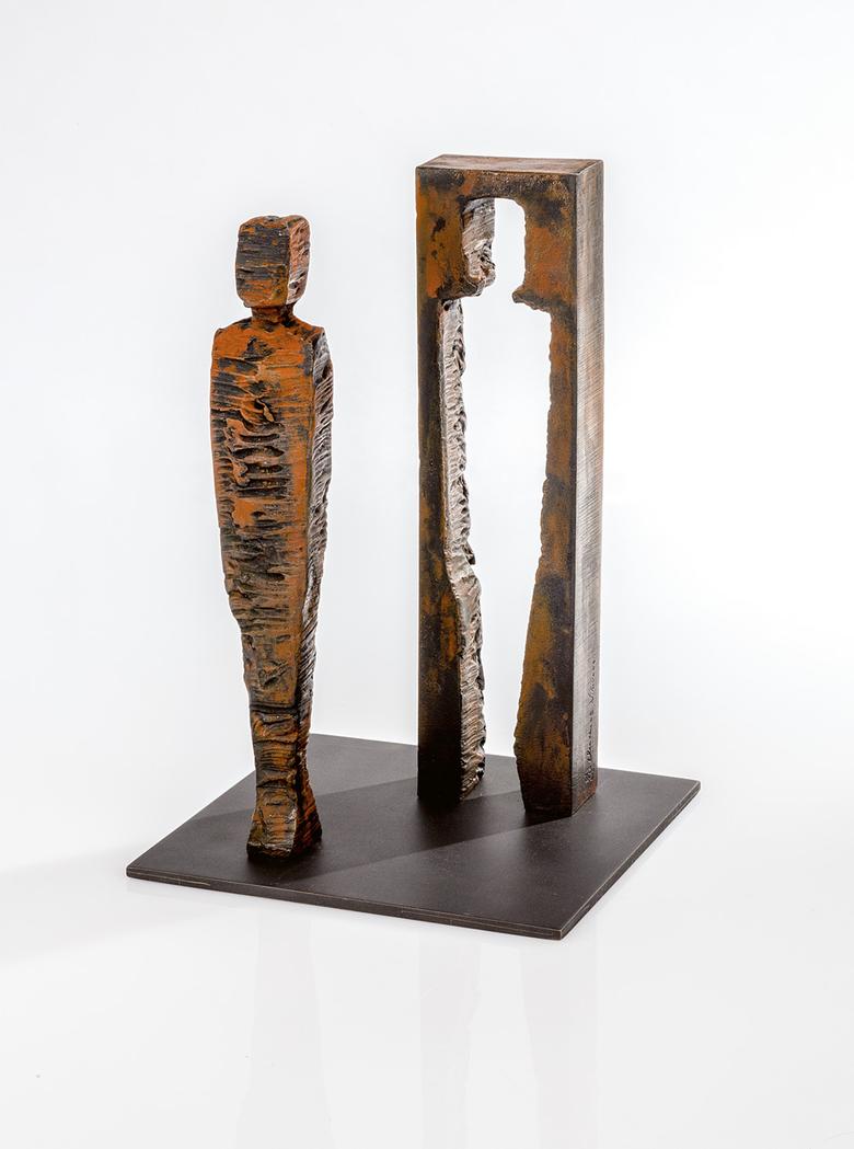 Für seine Kuben hat Nikolaus zum Schweißgerät gegriffen: Die Figuren sind aus einem massiven Eisenblock geholt. Die Technik mag eine andere sein als bei der Steinbildhauerei. Aber hier wie dort geht es darum, die künstlerische Idee gewissermaßen aus dem gewählten Material heraustreten zu lassen – und das tut Nikolaus bei seinen Kuben im Wortsinne. Sie zeigen: Es reicht ein Schritt hinaus aus dem vertrauten, aber auch beengenden, vermeintlich so festgelegten Rahmen, und schon tun sich völlig neue Perspektiven auf.