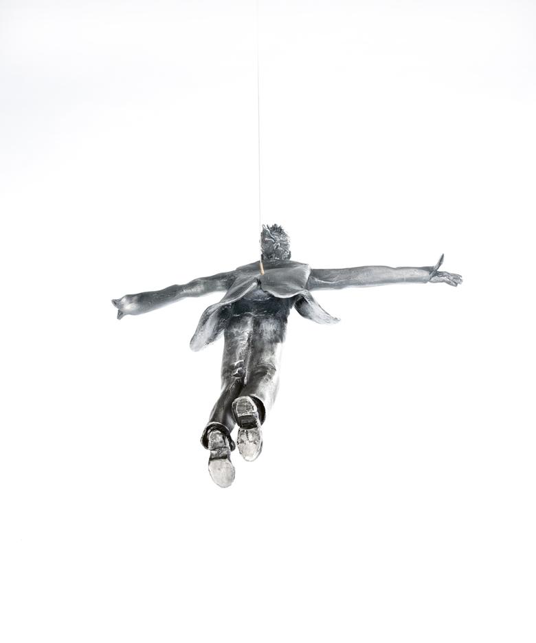 Der freie Fall als Metapher für den Sprung in die Freiheit. Mit weit geöffneten Armen überlässt er sich den Elementen.