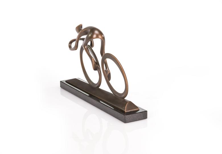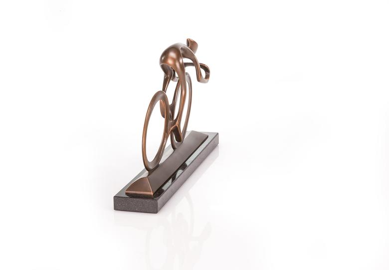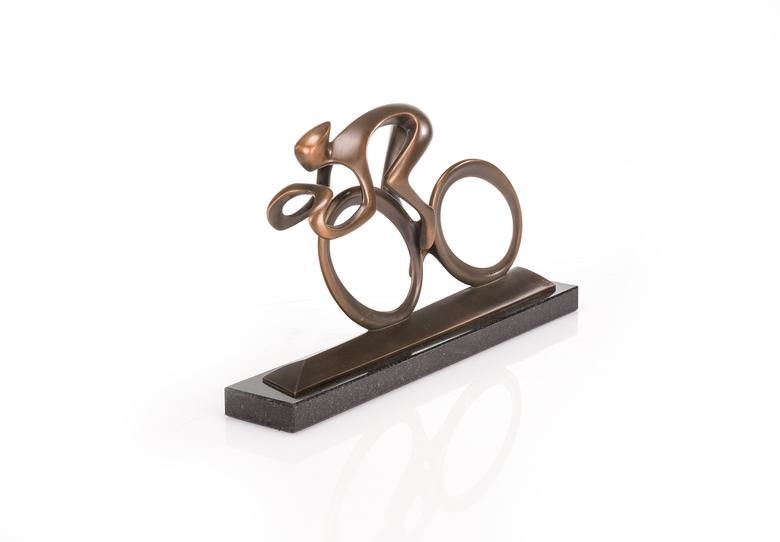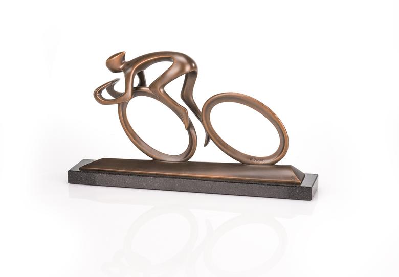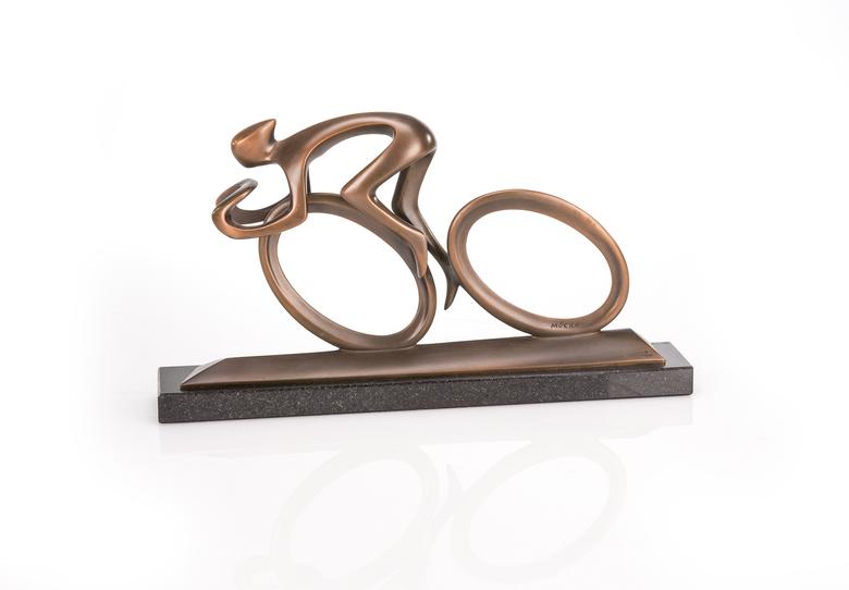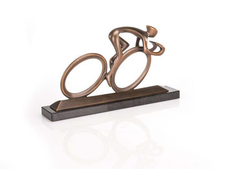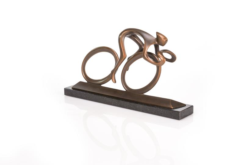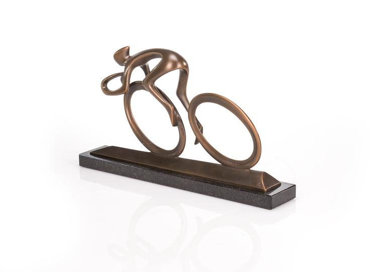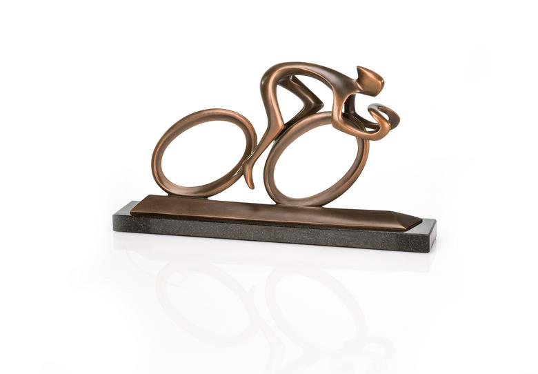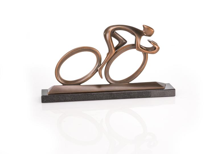 Tief über das Lenkrad gebeugt sprintet er dem Sieg entgegen selbst im rasenden Stillstand vermittelt die Skulptur dabei einen Eindruck von Kraft und Geschwindigkeit.