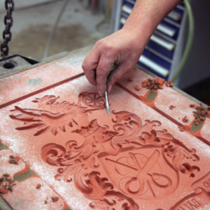 Sand casting is a proven technique for reliefs, plaques, coats of arms and small sculptures with small undercuts. The moulding sand used in this case has a special consistency. Its fineness allows a detailed reproduction of the model to be moulded from silica sand, bonding clay and water. The moulding sand gains its strength through mechanical stamping or pressing.