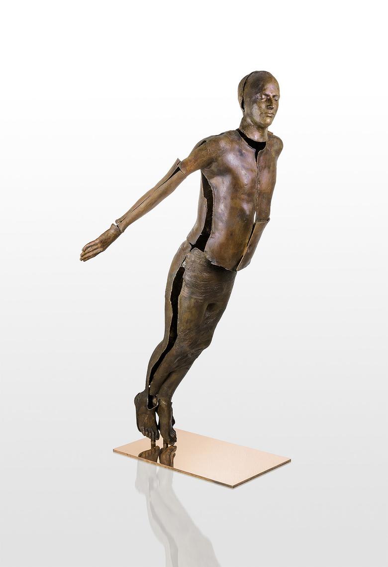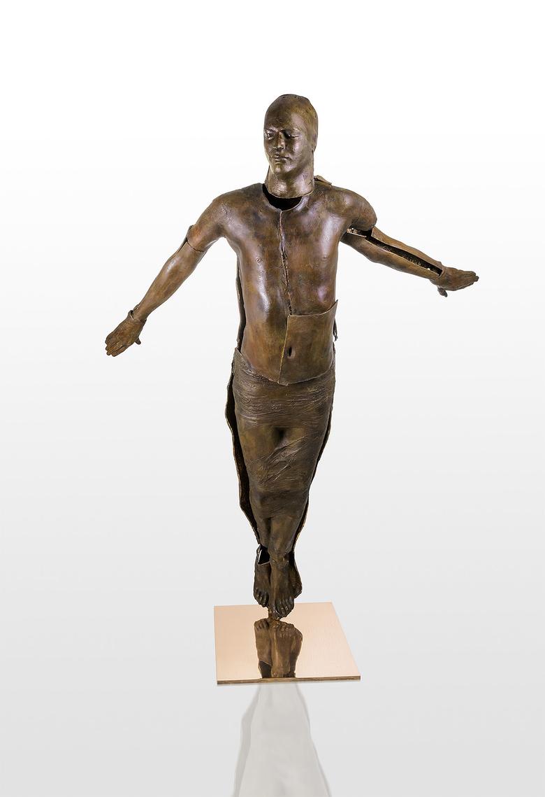 Is it flying? Is it floating? Kleeberg’s figure spreads its arms and seems at the same time completely withdrawn within itself – it may also be the intellectual flight of a creative idea making it take off.