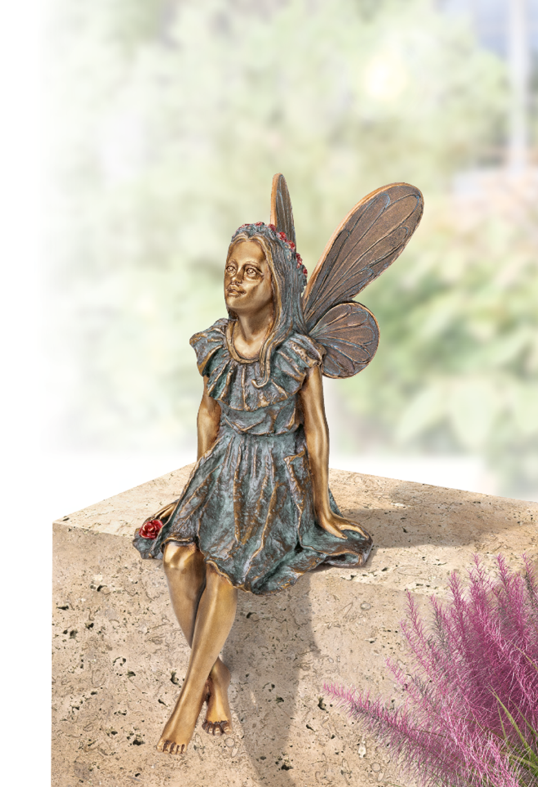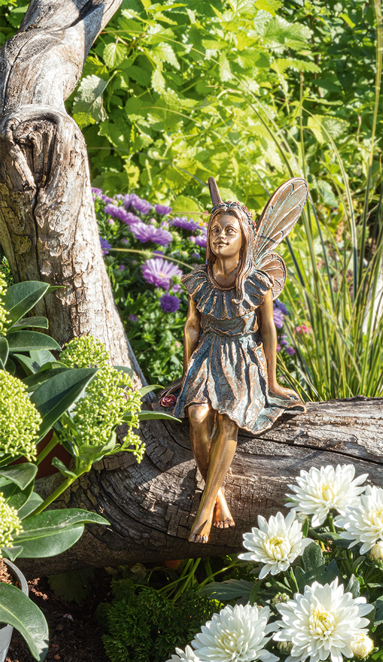 If you believe the Icelanders, it is always advisable to be considerate of fairies and trolls. This is reportedly true even if you don't really believe in the "invisible people". Our (visible) fairy, sitting on a tree trunk or the edge of a wall, delights "believers" and "non-believers" with her presence in the garden.