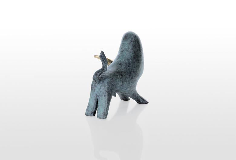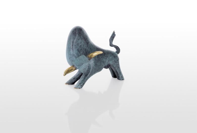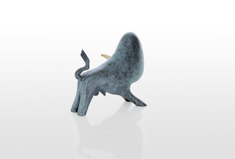 Heinz Rupp's sculpture "Mistral" does not deny the jewellery artist and designer: His feeling for proportions is characteristic and gives this abstract bull with its curved back an harmonious and dynamic appearance.