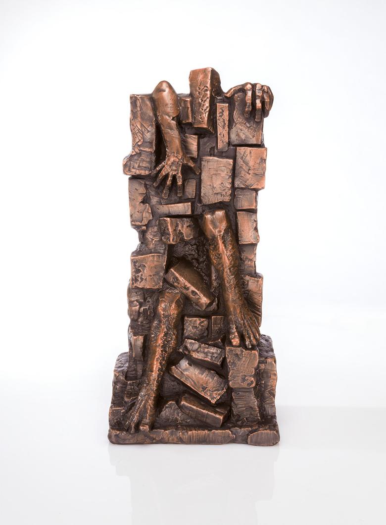 The legs, one hand, and one arm are already protruding from the masonry: the desire for freedom is stronger than the constraints surrounding a person.