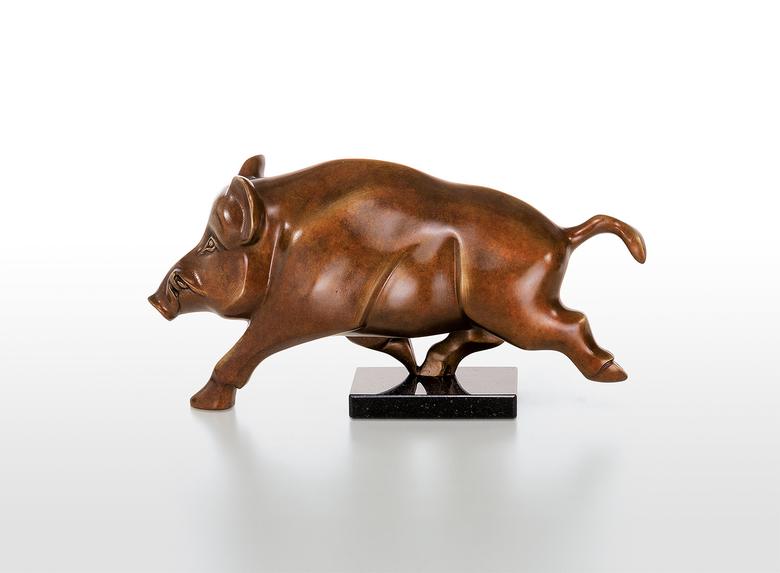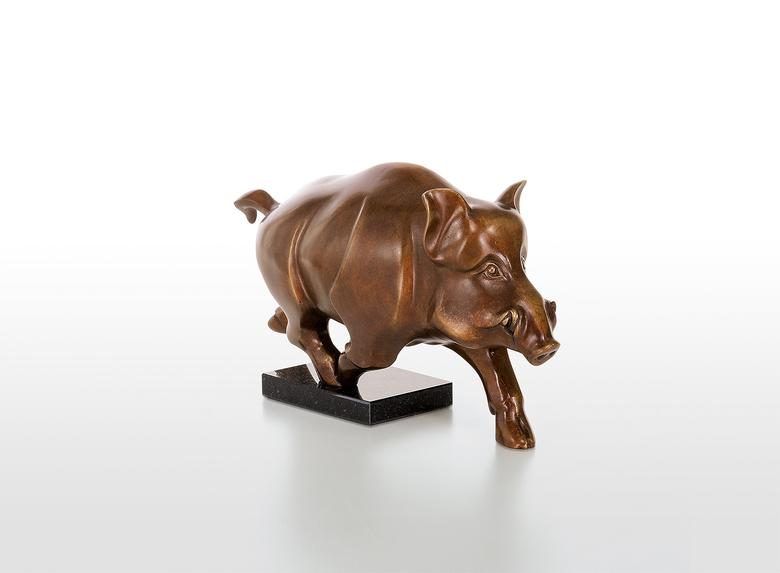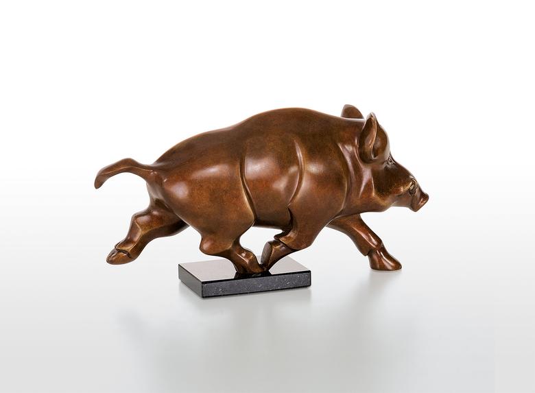 Massive and heavy, but also of great elegance. Jagna Weber presents the wild pig in the fast run, which gives the sculpture high dynamics despite its power and heaviness.