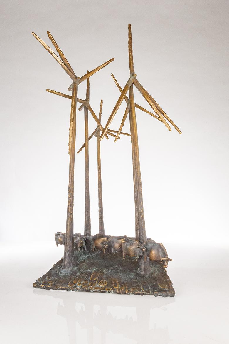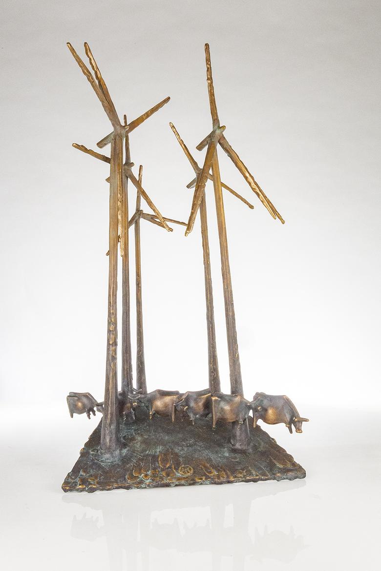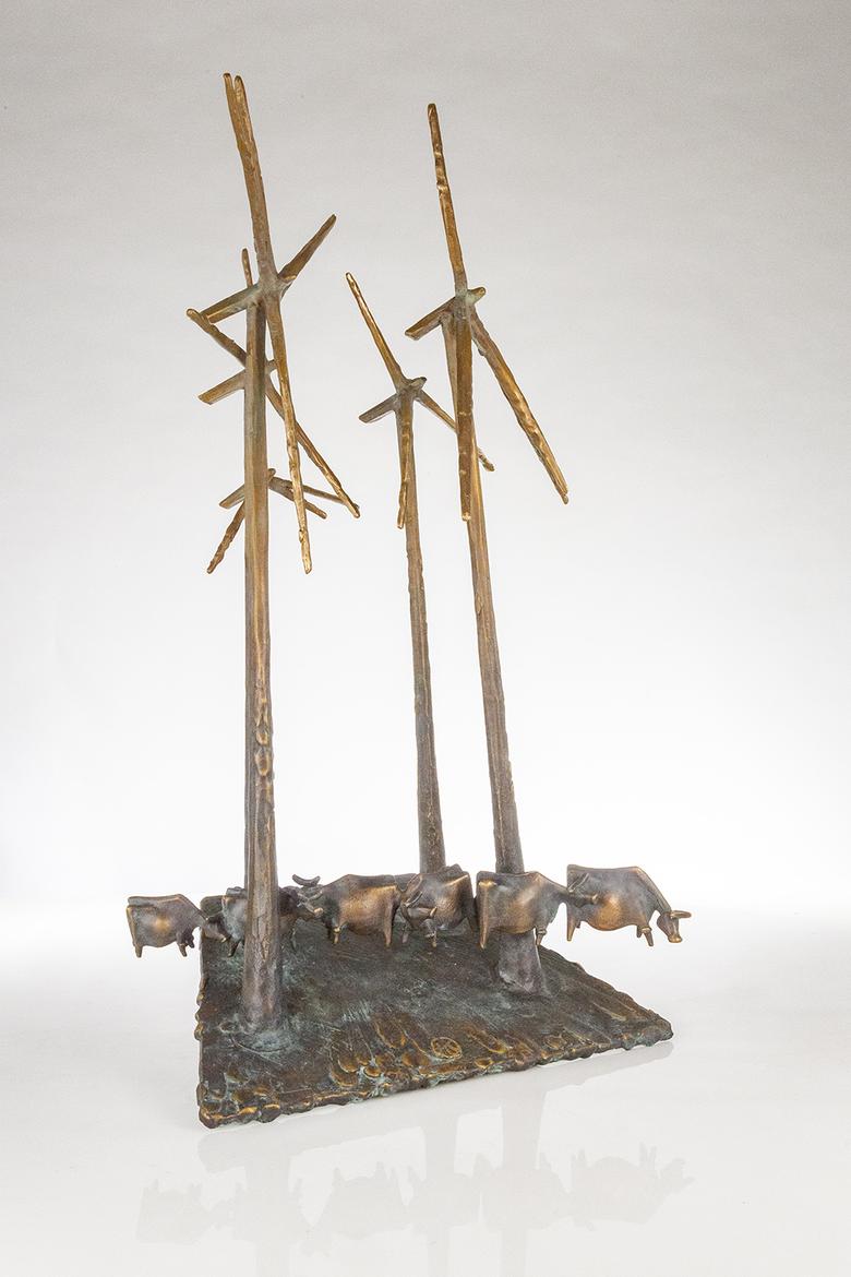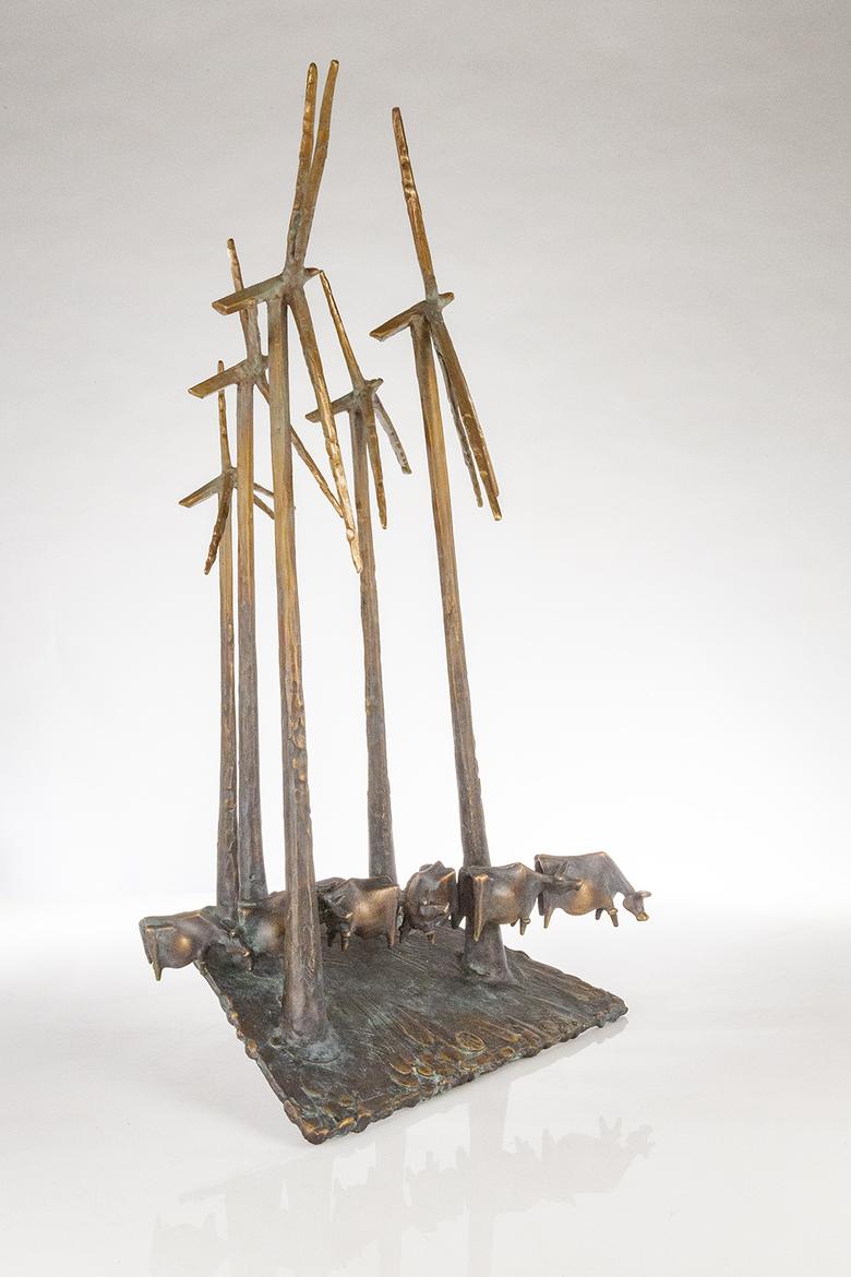 With the permission of his family, we are able to present ‘Windweide’, another work from the estate of Kurtfritz Handels. It shows him from a new, unknown side as a precise observer of a landscape that was changing before his eyes for ecological reasons. On the one hand, his ‘Windweide’ is a pastoral idyll with grazing cows - a classic motif of landscape depiction for centuries - but on the other, it is also an unflinching look at the modern world of today, in which wind turbines also ‘graze’ in order to protect nature from further destruction.