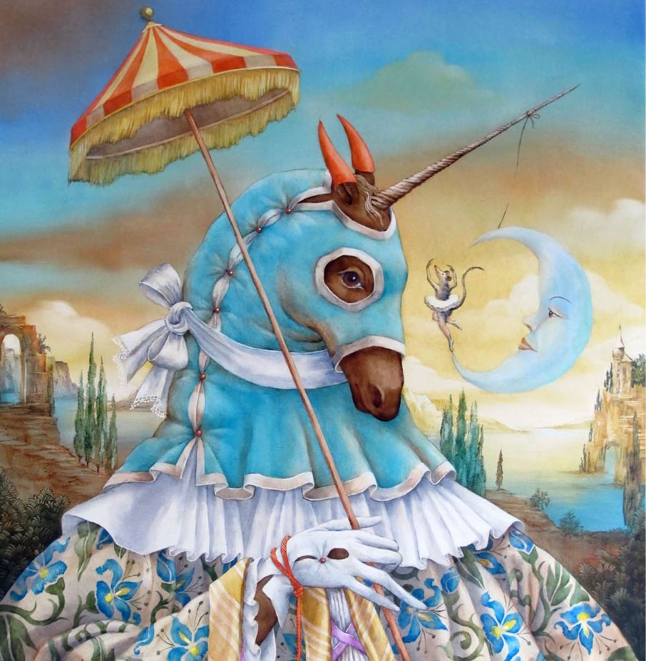 So lange sie sich erinnern kann, war Agnès Boulloche immer eine große Bewunderin von fabelhaften Kreaturen wie Chimären, Gorgonen und Geistern. Wenn sie malt, lebt sie in einem fantastischen Reich, das von vermenschlichten Tierwesen bewohnt wird, einer wundersamen Welt, angelehnt an die Renaissance und das späte Mittelalter. Sie träumt mit offenen Augen, und ihre Kunst vermag man erst zu glauben, wenn man sie selbst gesehen hat.