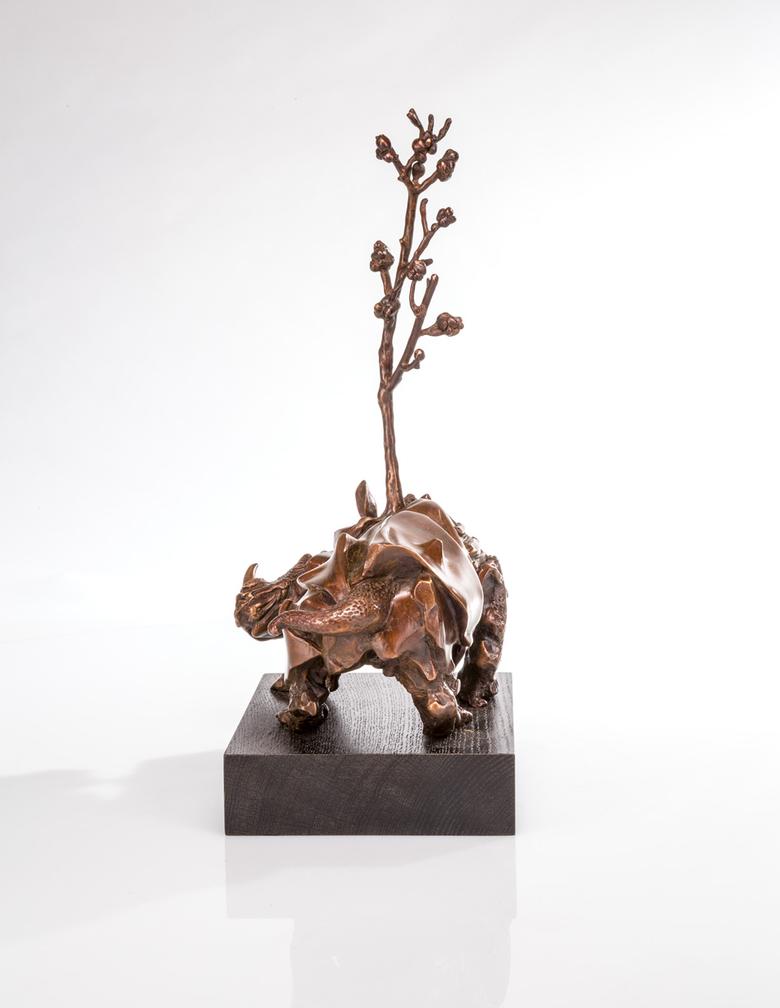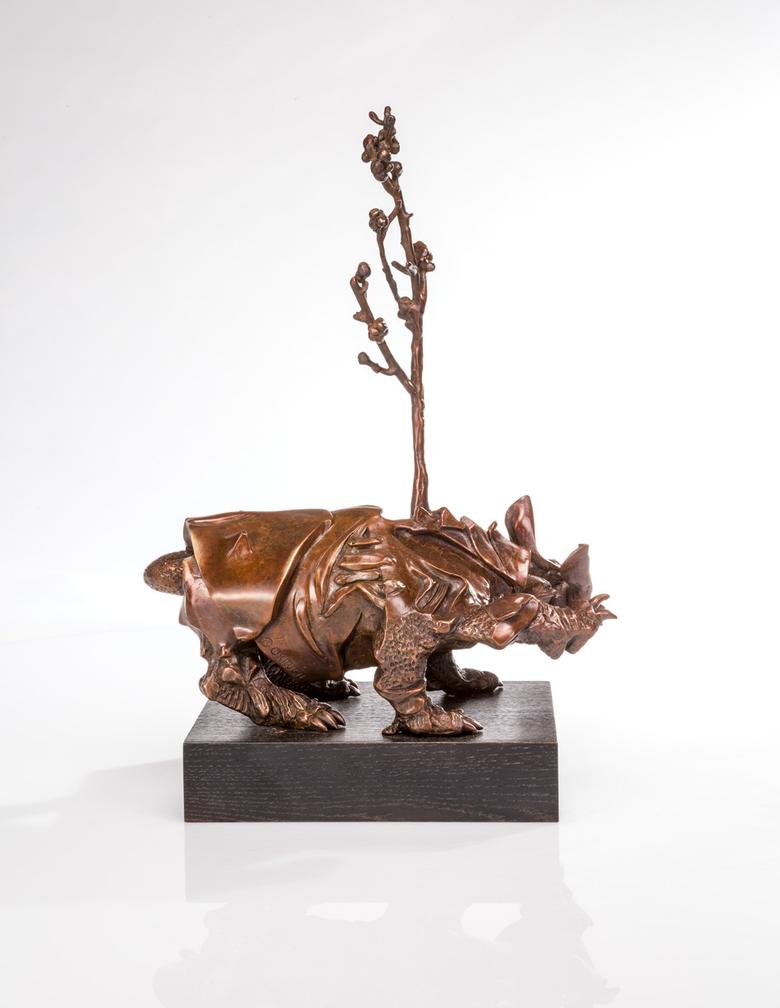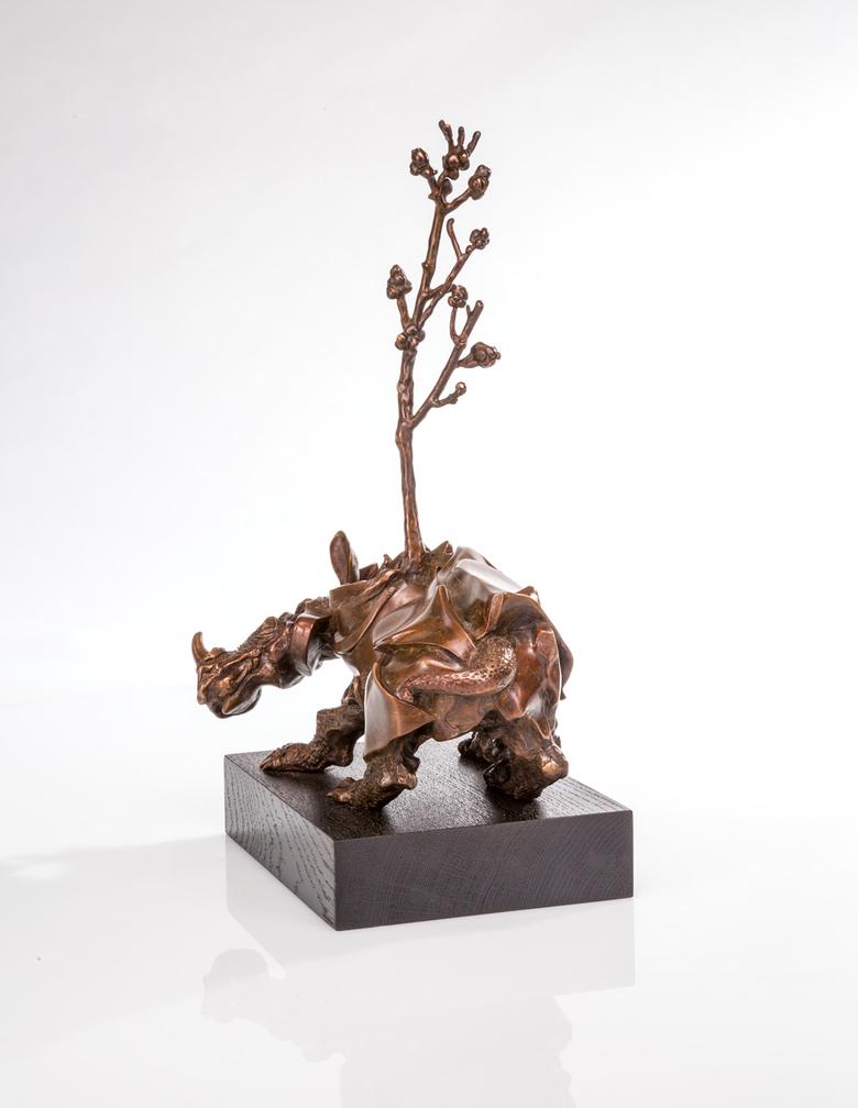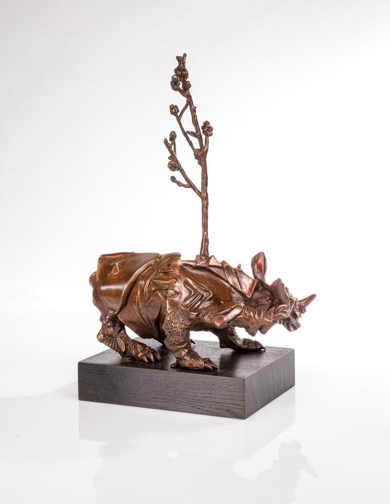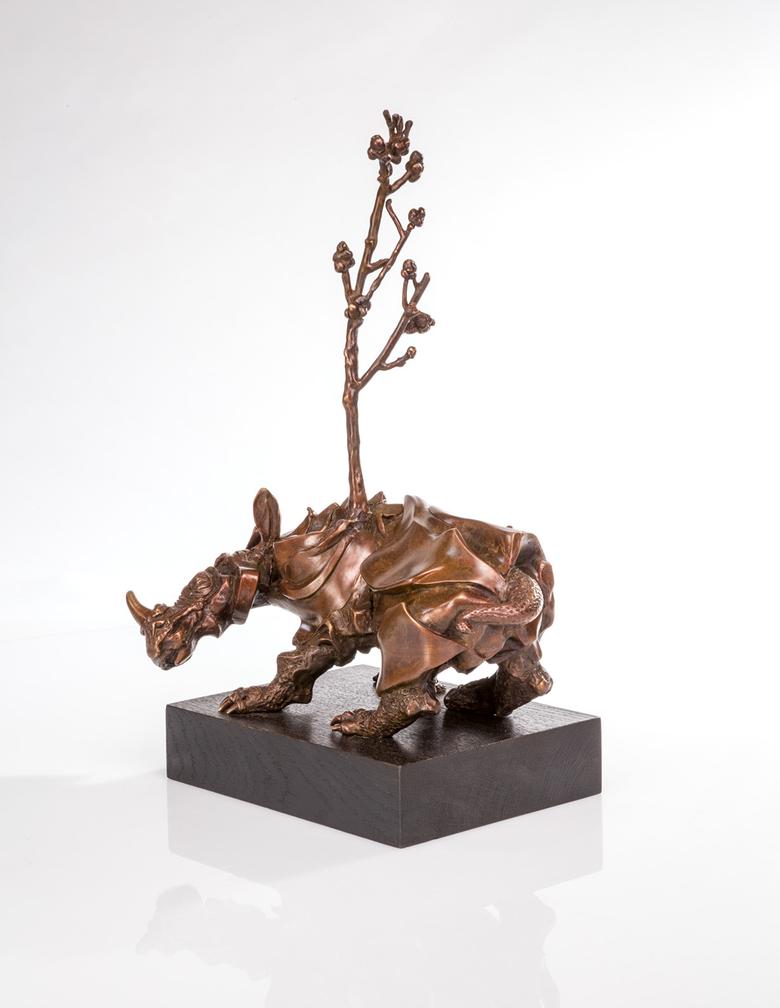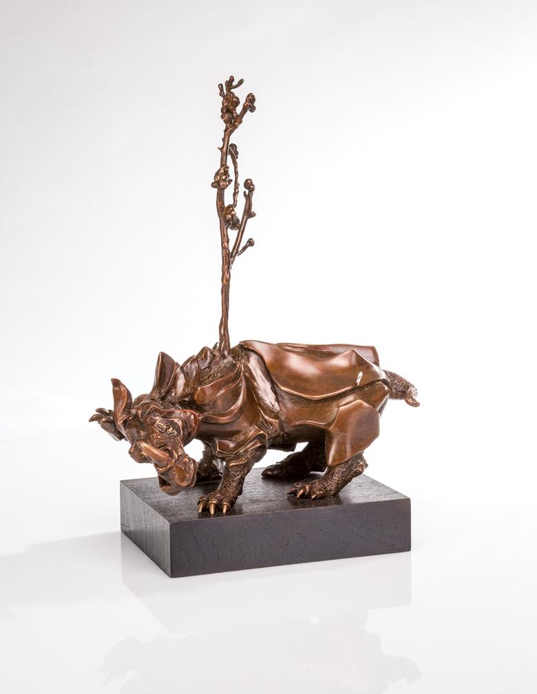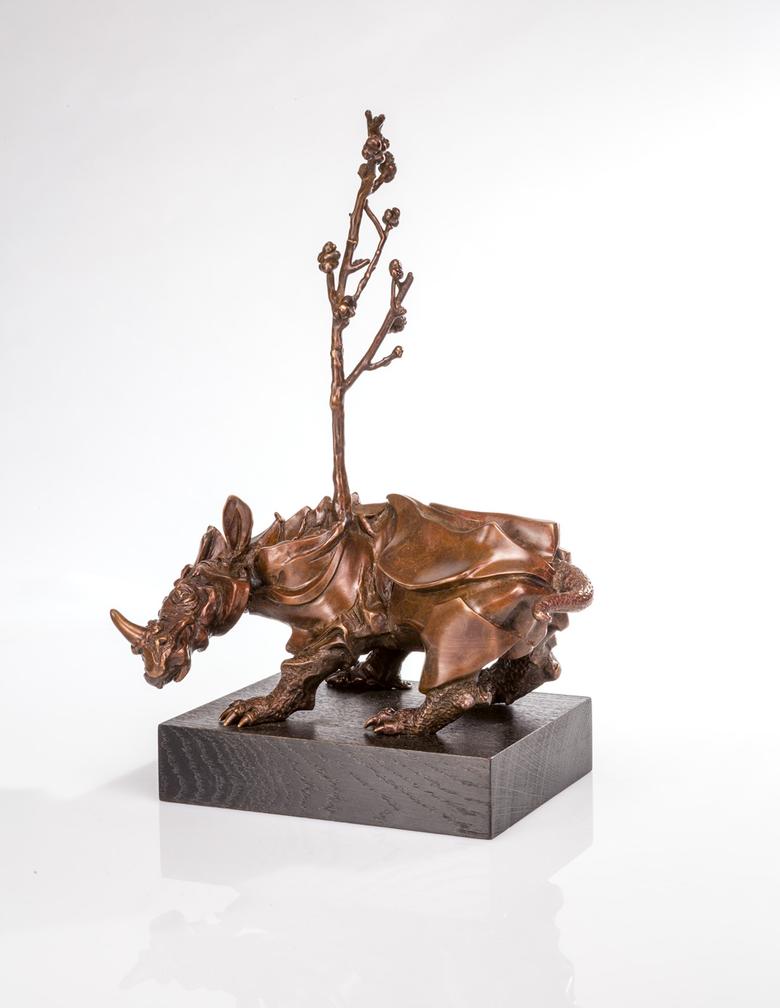 Kruch’s rhinoceros, which recalls Dürer’s famous drawing, is a symbol of life and death. At a ripe old age, it stands on the threshold of death, yet new life has long been emerging from him in the form of a tree.