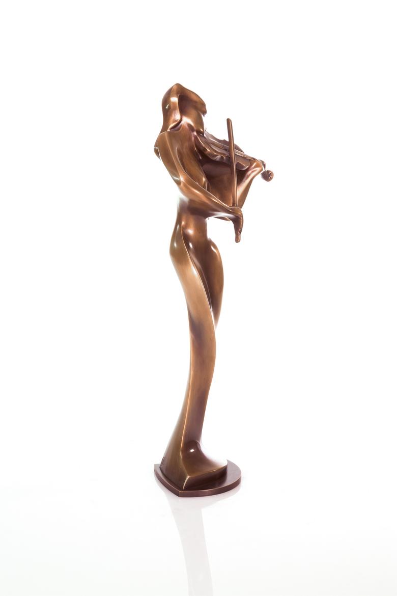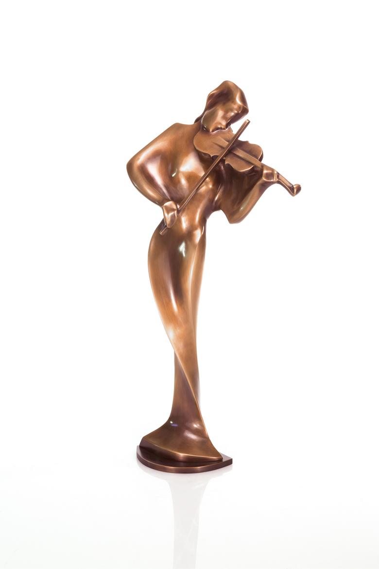 Simon’s violinist connects the musical idea with a depiction that is no less harmonious and whose shapes flow through space.