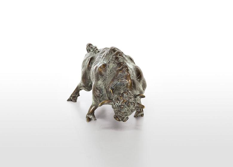 One can almost hear the snorting through his widened nostrils: Schröder shows the bull in attacking position, every single muscle of his powerful body is tensed.