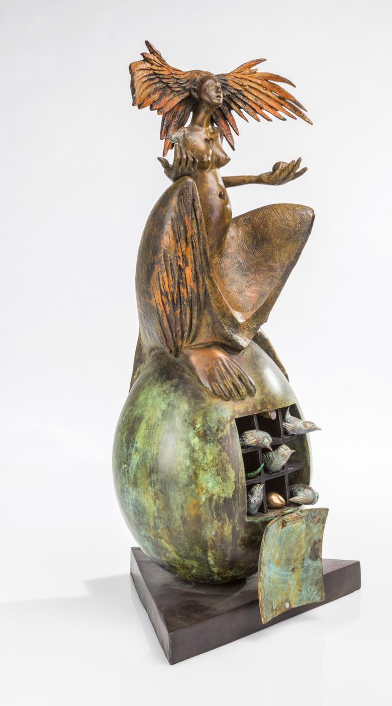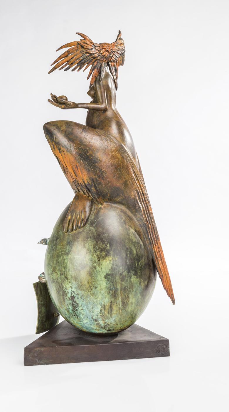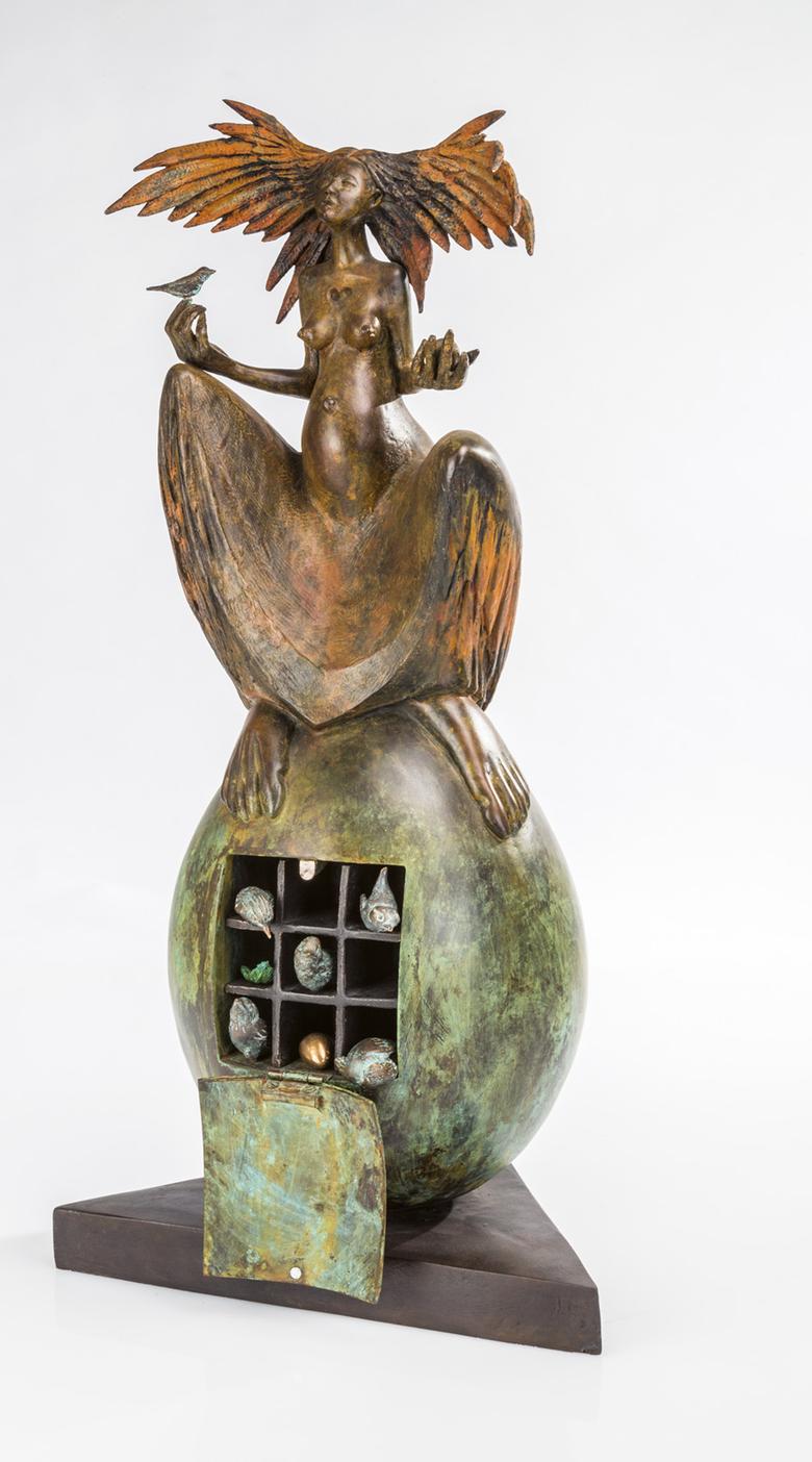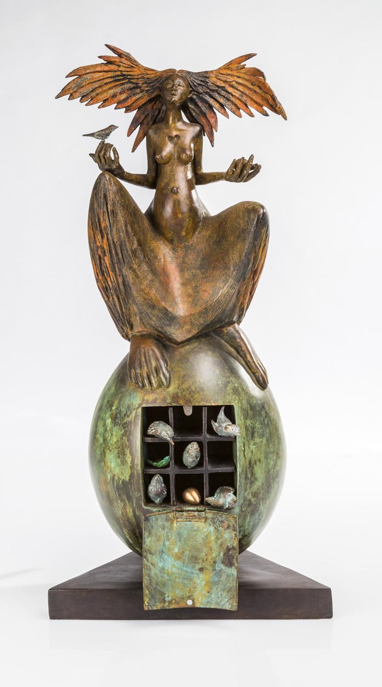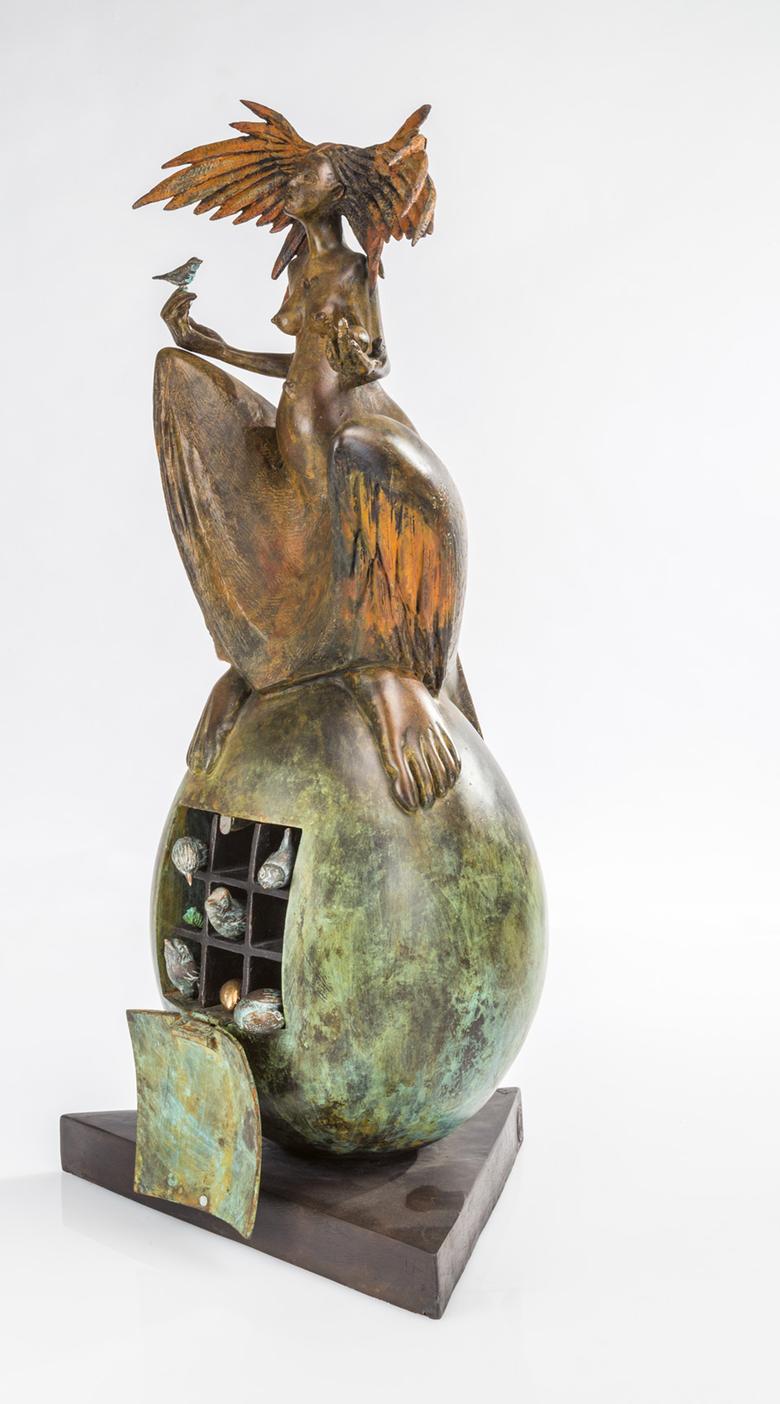 Une sculpture de femme trône majestueusement en longue robe sur un œuf surdimensionné, symbole de fertilité largement répandu dans le monde. L’agitation règne déjà à l’intérieur : il est possible d’ouvrir The great egg, et la vie s’éveille alors sous la forme de petits oiseaux miniatures.