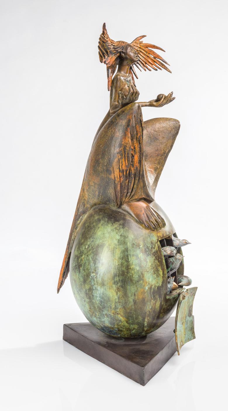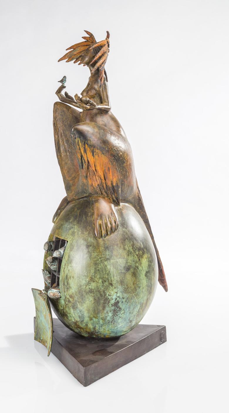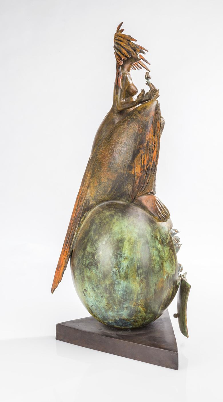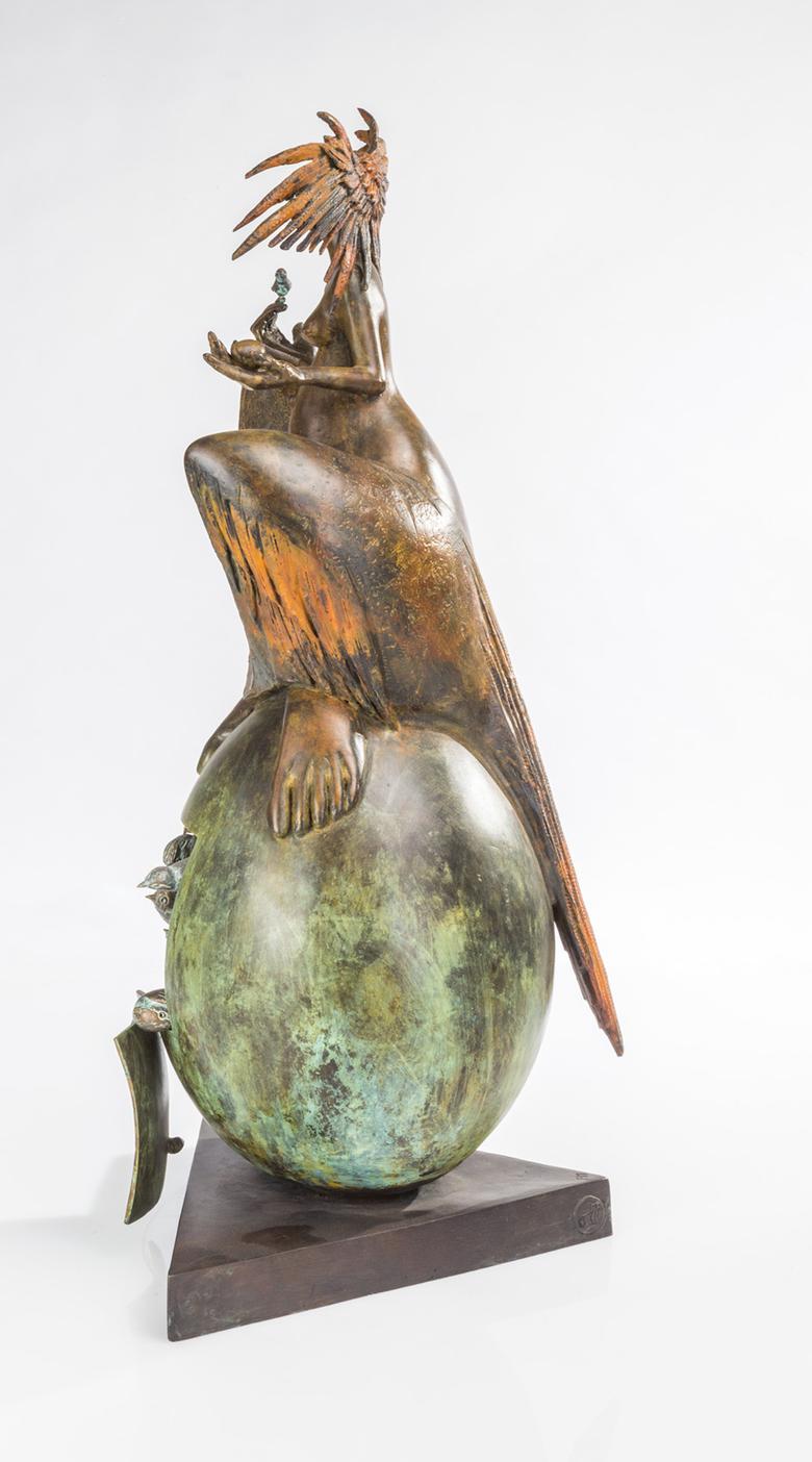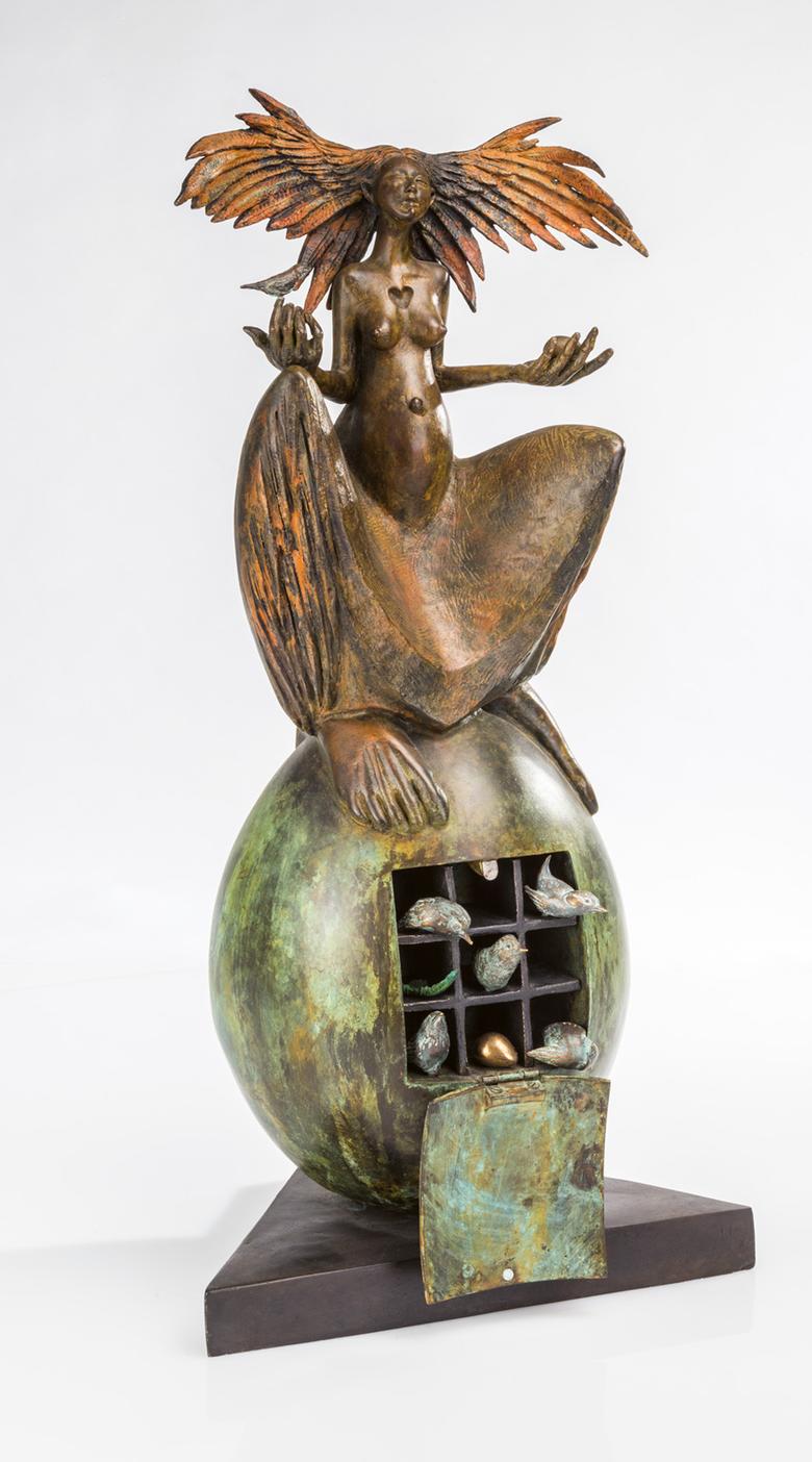 Une sculpture de femme trône majestueusement en longue robe sur un œuf surdimensionné, symbole de fertilité largement répandu dans le monde. L’agitation règne déjà à l’intérieur : il est possible d’ouvrir The great egg, et la vie s’éveille alors sous la forme de petits oiseaux miniatures.